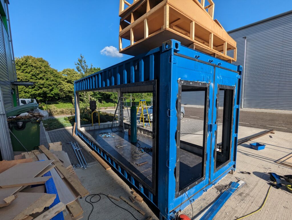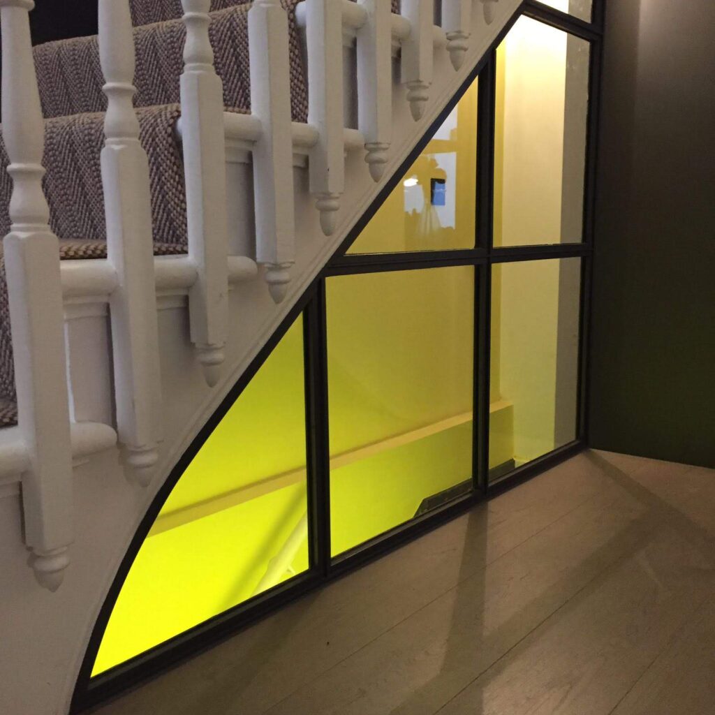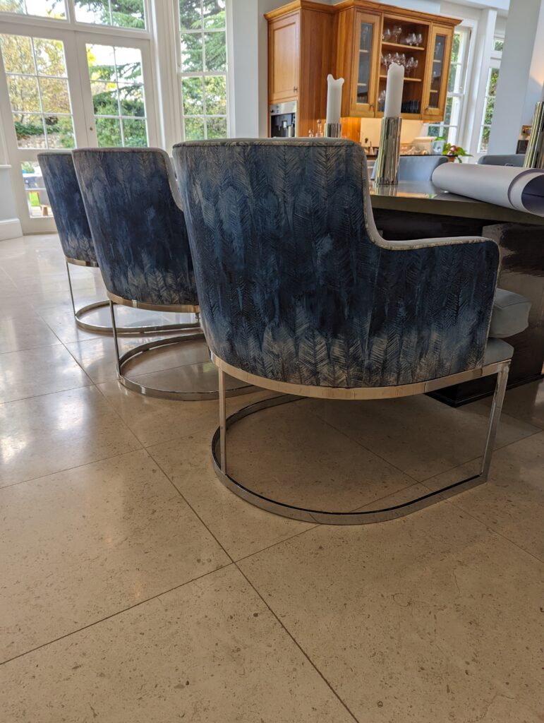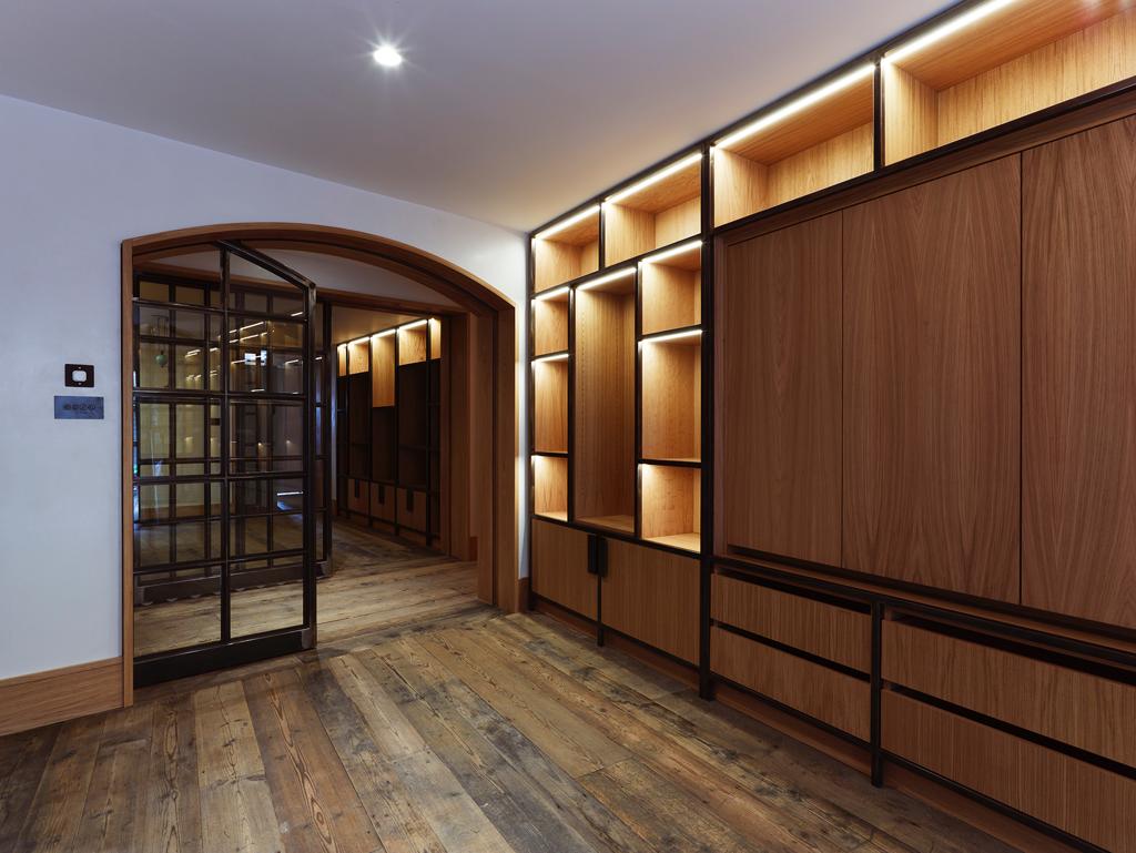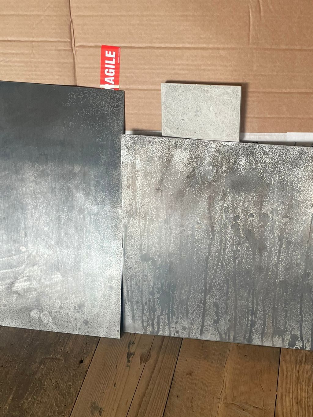 Working closely with the architect we were given the opportunity to experiment with techniques for producing patination on panels for kitchen units and shelving capping